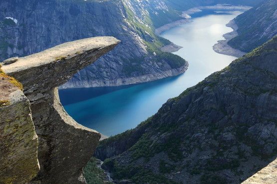 TROLLTUNGA (LINGUA DI TROLL), VESTLAND, NORVEGIA - È una celebre e spettacolare roccia sporgente che si protende in orizzontale, sospesa a 700 metri sul lago Ringedalsvatnet. Si trova a poca distanza dal villaggio di Skjeggedal; è situata a 1100 m s.l.m. ed è uno dei siti più iconici e fotografati di questa regione.