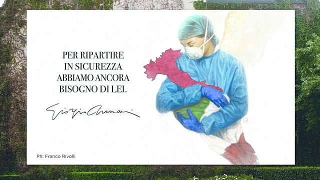 Finalmente, un nuovo inizio. Questo lunedì 18 maggio segna la ripartenza di tutte le attività commerciali nell’Italia alle prese con la gestione della Fase 2 dell’emergenza coronavirus. Anche il mondo della moda è pronto a riaprire i battenti e a lanciare il cuore oltre l’ostacolo pandemia. Sanificazioni, distanziamento sociale, mascherine, ricevimento nelle boutique tramite appuntamento. A Milano Giorgio Armani ha dedicato il ‘suo’ murale (lo spazio pubblicitario in via Broletto) all’immagine della dottoressa con le ali che tiene tra le braccia l’Italia, diventata simbolo della lotta al Covid 19.