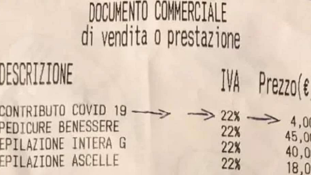 "Spunta in Italia la 'tassa Covid', un balzello dai 2 ai 4 euro applicato dagli esercenti ai propri clienti, e inserito direttamente come sovrapprezzo nello scontrino, per finanziare i maggiori costi sostenuti dagli esercizi commerciali a causa del coronavirus". Lo scrive il Codacons, che riceve da giorni segnalazioni dei consumatori circa rincari e voci di spesa originali applicati dagli esercenti.
