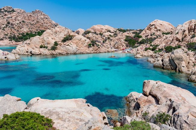 CALA COTICCIO, CAPRERA, SARDEGNA - Situata nella parte nord-orientale dell'isola di Caprera, ospita una delle spiagge più belle e celebri della Sardegna, con sabbia sottile e candida, mare cristallino, rocce rosate e arbusti di macchia mediterranea. La caletta, per la sua spettacolare bellezza, è soprannominata Tahiti.