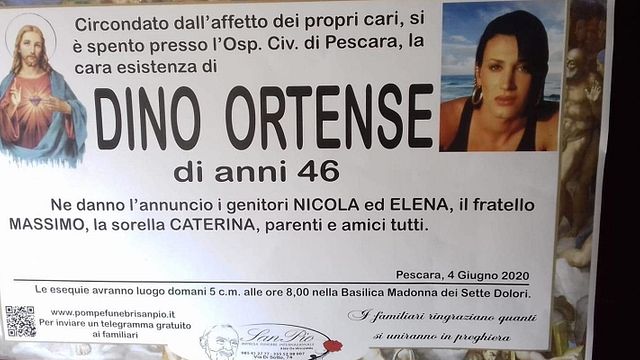 E' morta qualche giorno fa all'ospedale Civico di Pescara Alessia Ortense, trans 46enne. Sul manifesto funebre è stata indicata con il suo nome anagrafico al maschile, Dino, e questo ha scatenato la rabbia degli amici e della comunità trans. A darne notizia con un post denuncia su Facebook Giovanna Miscia, organizzatrice delegata per l’Abruzzo di Miss Trans Italia, che ha scritto: "Un altro caso di mancanza di rispetto per l'identità di una persona trans. Nemmeno da morta è stata considerata nel giusto modo".