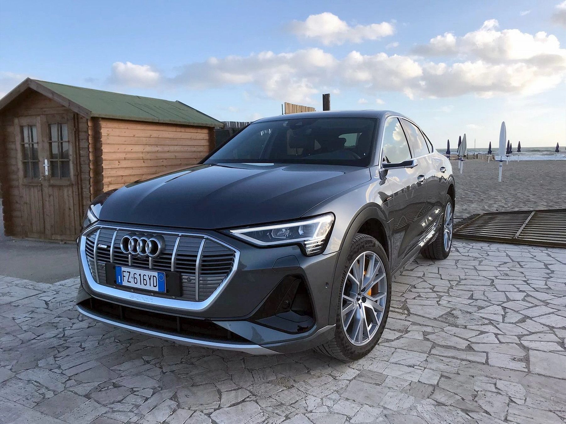 Il look di Audi e-tron Sportback è quello dei Suv/Coupé, la mole è importante (4,9 metri di lunghezza) e il Cx aerodinamico di 0,25 di assoluta eccellenza. La guida è sontuosa, lʼaspetto più caratterizzante della trazione elettrica dovrebbe essere lʼaccelerazione bruciante, poiché la coppia massima (664 Nm) è disponibile fin dai primi giri del motore. Ma francamente non è il modo giusto di valutare questa vettura, che ha sì più di 400 cavalli e sullo 0-100 fa segnare 5,7 secondi, ma soprattutto la e-tron Sportback è godibile ai bassi e medi regimi, quindi fruibile sempre. Con una singola ricarica delle batterie riesce a fare fino a 450 km, e bastano 30 minuti per ottenere lʼ80% di carica a corrente alternata DC da 150 kW.