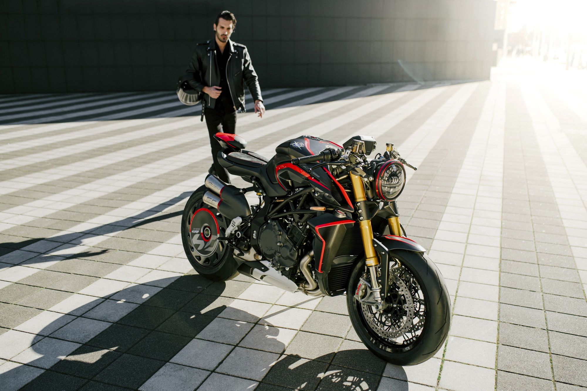 Il look sportivo della Rush 1000 si deve anche alla combinazione dei colori: grigio scuro metallizzato opaco, rosso “mamba”, carbonio opaco e bronzo metallizzato. Sportività ma non solo, anche stile, carattere, eleganza. La versione con il Racing Kit aggiunge lo scarico racing in titanio. Il prezzo della MV Agusta Rush 1000 è di 34.000 euro.