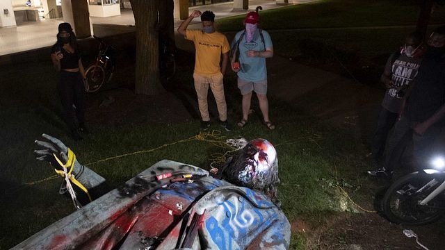 Un gruppo di dimostranti ha abbattuto e bruciato l'unica statua di un generale confederato a Washington DC, un gesto definito "vergognoso" dal presidente americano Donald Trump. Le immagini, trasmesse dall'emittente tv ABC7 News, mostrano la statua di Albert Pike mentre viene rimossa con una corda e riprendono i dimostrati che appiccano il fuoco all'effigie al grido di "black lives matter".