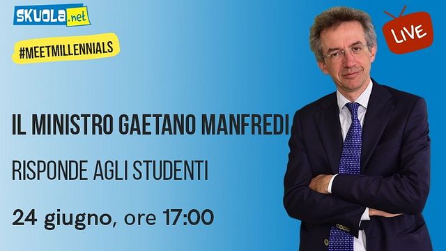 A "interrogare" il ministro dell’Università e della Ricerca, Gaetano Manfredi, saranno Daniele Grassucci, direttore e co-founder di Skuola.net e Carla Ardizzone, caporedattrice di Skuola.net. Saranno loro, come veri esperti di tutto ciò che riguarda il mondo scuola e università, a farsi portavoce degli studenti con il Ministro. L'intervista sarà visibile dalle ore 17:oo di mercoledì 24 giugno, sul sito Skuola,net e sui suoi canali social Facebook e YouTube.