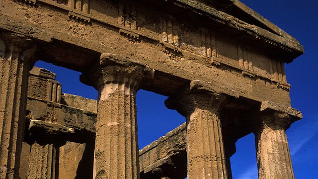 Il viaggio inizia al mattino di buon’ora, diretti verso Agrigento, la Valle dei Templi. Già in lontananza si vedono quegli imponenti monumenti dedicati agli dei. Ma esser lì vicino è tutt’altra cosa. Era meta di devoti già nel VI secolo a.C. il tempio di Eracle (Ercole), il più antico della Valle, con le sue 90 colonne doriche di perimetro (oggi purtroppo se ne apprezzano poche ancora in piedi). Poco in confronto al tempio di Zeus, che, se avessimo potuto vederlo integro, avrebbe impressionato per le sue dimensioni (era questo il più grande tempio dorico dell’Occidente) e per la spettacolarità degli enormi Telamoni, figure mitologiche maschili in pietra alte 8 metri che sostenevano la trabeazione.