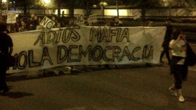 Alcune migliaia di persone hanno manifestato a Madrid "contro le mafie, il governo e la monarchia". Il corteo è stato organizzato da diversi collettivi, tra i quali il 15M degli "indignados". Non ci sono stati incidenti e la polizia ha controllato a distanza i manifestanti i quali hanno gridato slogan contro la corruzione politica, il governo spagnolo, accusato di essere il maggiore responsabile della crisi, e re Juan Carlos.