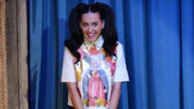 Per una notte Katy Perry è ritornata bambina. La star si è infatti presentata nello studio del talk show di Jimmy Fallon con un look da lolita supersexy. Minigonna di pelle, calzettoni e capelli legati in teneri codini per Katy, che ha sfidato il presentatore al gioco da tavolo "Taboo". Dopo il successo di "Roar", la popstar il prossimo 10 novembre lancerà il suo nuovo singolo dal palco degli Europe Music Awards di Amsterdam.