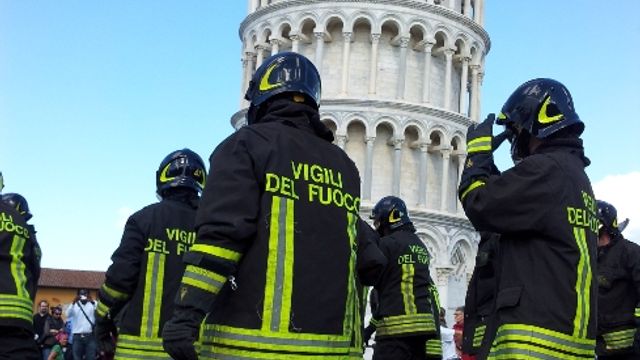 Cinquanta vigili del fuoco, aderenti all'Unione sindacale di base, si sono ritrovati oggi in "Piazza dei miracoli" a Pisa, per denunciare la "morte" del loro corpo nazionale, "per colpa delle polemiche di austerity". I pompieri, indossando le divise, si sono stesi a terra davanti a centinaia di turisti, e hanno fatto scendere due striscioni dalla Torre. "Il Governo - ha spiegato l'Usb - tenta di limitarci con blocchi di assunzioni, congelamento di contratti, innalzamento dell'età pensionabile e riduzione degli acquisti di automezzi". L'Usb ha poi concluso: "Noi vogliamo solo poter continuare a svolgere con professionalità il nostro lavoro al servizio dei cittadini, pertanto chiediamo di essere ascoltati e pubblicizziamo una vera riforma del settore protezione civile, con al centro i Vigili del Fuoco, così da poter garantire il soccorso in Italia ed evitare il disperdersi di fondamentali risorse economico - finanziarie".