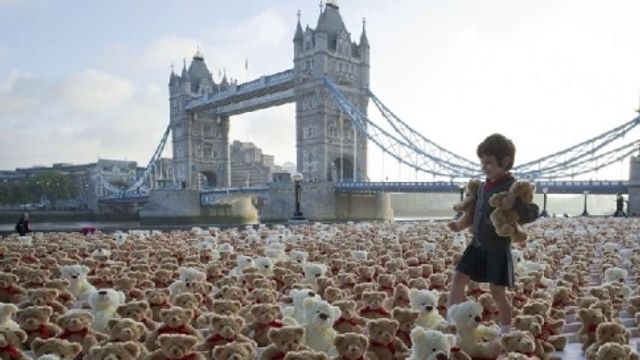 Potter's Field invasa da 3.400 orsacchiotti di peluche, i famosissimi Teddy Bear, tutti radunati a Londra, sulla riva del Tamigi, accanto al Tower Bridge. L'immensa distesa dei peluche trasforma il paesaggio, per la gioia di alcuni piccolissimi ospiti. Dietro l'iniziativa c'è la fotografa, australiana ma naturalizzata britannica, Anne Geddes, nota per i suoi poetici e tenerissimi ritratti di bambini conosciuti in tutto il mondo. La sponsorizzazione è dell'industria farmaceutica Novartis e lo scopo è benefico: l'obiettivo è infatti quello di sensibilizzare l'opinione pubblica a proposito dell'incidenza annuale della meningite batterica nel Regno Unito. Si tratta infatti di una malattia che colpisce soprattutto i bambini.