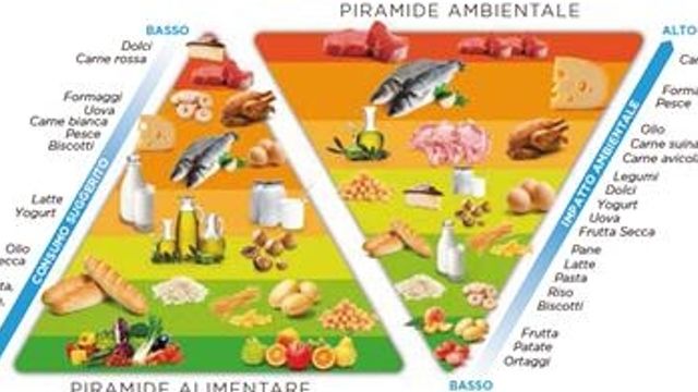 La doppia piramide alimentare-ambientale, un modello elaborato dal BCFN, indica in modo intuitivo l’impatto che ogni alimento ha non solo dal punto di vista nutrizionale, ma anche a livello ambientale, considerato il ciclo di vita, ovvero le modalità con cui viene trattato prima di arrivare sulla tavola o le necessità di cottura collegate al suo consumo, in termini di dispendio energetico e di risorse. La doppia piramide mostra che i cibi più sani dal punto di vista nutrizionale sono anche quelli che hanno un impatto inferiore sull’ambiente, perché hanno un’impronta ecologica ridotta.