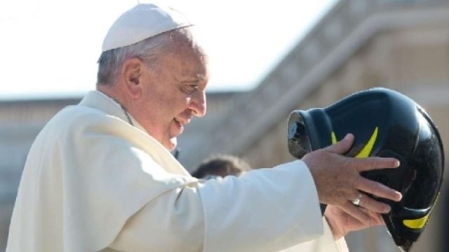 Papa Francesco è stato protagonista dell'ennesimo fuori programma sul sagrato di San Pietro. Mentre attraversava la piazza per l'udienza generale del mercoledì, il Pontefice ha indossato un casco nero con incise alette verdi offertogli dai Vigili del fuoco volontari. Secondo le stime della Prefettura della Casa Pontificia, in piazza c'erano settantamila persone.