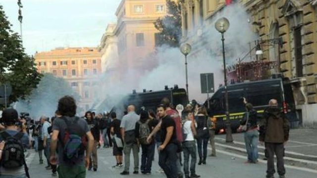 Il corteo è filato via liscio fino alla fine, se si escludono quei momenti che erano stati ampiamente annunciati dagli stessi organizzatori. L'assedio al ministero dell'Economia e quello alla Cassa depositi e prestiti doveva essere duro e duro è stato, così come il blitz all'ambasciata tedesca dell'odiata Merkel. Sfilata la testa del corteo, due distinti gruppi di incappucciati, non più di 400 persone in tutto, si sono dati il cambio per assaltare prima i blindati davanti alla sede dell'Economia in via XX settembre e poi quelli in via Goito dove si trova la Cassa depositi e prestiti.