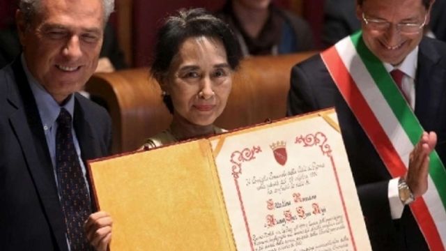 "La mia seconda visita a Roma dopo oltre quarant'anni. Memorabile". Questo ciò che il Premio Nobel per la Pace Aung San Suu Kyi, ha scritto in inglese sul Libro d'Oro di Roma Capitale, un libro che raccoglie testimonianze di personalità illustri che vengono in Campidoglio. La esponente politica birmana è stata in Campidoglio per ricevere la cittadinanza onoraria.