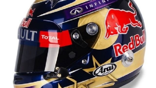 Sebastian Vettel festeggia con un casco speciale il quarto titolo Mondiale consecutivo con la Red Bull. Ad Abu Dhabi il tedesco indossa una lavorazione particolare, ottenuta con l’ausilio di una foglia d’oro laminata da 24 carati.