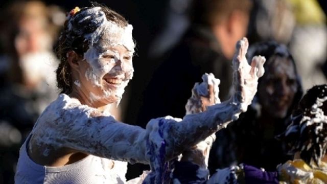 L'inaugurazione dell'anno accademico alla St Andrews University, in Scozia, è quantomeno insolita. Terminati i discorsi ufficiali e le cerimonie istituzionali, infatti, gli studenti si sono sfidati anche quest'anno nella tradizionale lotta in mezzo alla schiuma. Armati di bombolette di schiuma da barba, si sono fronteggiati nei cortili dell'ateneo: nel mirino, chiaramente, le matricole.