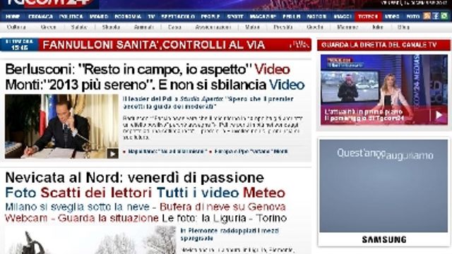 Tgcom24 is 24-hour rolling news on television, Channels 51 and 111 on the digital terrestrial platform, and on the web, tablets, smartphones and mobiles. 20 million unique users and 580 million page views every month. 3 million apps downloaded free on all mobile devices. Including news, updates, “from the press”, newsfeatures, surveys. Edited by Mario Giordano, TgCom24 has an editorial staff of some 130 digital journalists. Always live, in Italy and around the world.