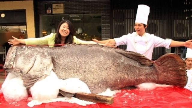 Oggi di fresco la casa offre... una cernia gigante da 341 chili. Il pesce, lungo più di 2 metri e mezzo, è finito tra il pescato del giorno di un ristorante cinese di Dongguan, nella provincia di Guangdong. Nelle foto la proprietaria del locale e lo staff di cucina mostrano soddisfatti la grandezza della cernia. Chissà che padella avrà usato lo chef per cucinarla.
