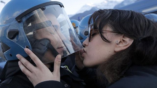 Altro che messaggio di pace alle forze dell'ordine. Piuttosto un tentativo di ridicolizzarle. A parlare alla Stampa è la ragazza protagonista della foto-simbolo scattata da un reporter dell'Afp e ripresa dalla quasi totalità dei quotidiani e siti italiani di informazione. Lei, Nina De Chiffre, 20enne milanese militante del collettivo Remake, ci tiene subito a chiarire: "Quella foto non è stata assolutamente organizzata ad arte, come molti hanno insinuato. Il fotografo ha solamente avuto fortuna. Ma soprattutto: il mio intento non era quello di lanciare un messaggio di pace. Volevo metterli in imbarazzo: volevo prenderli in giro. Direi che ci sono riuscita".