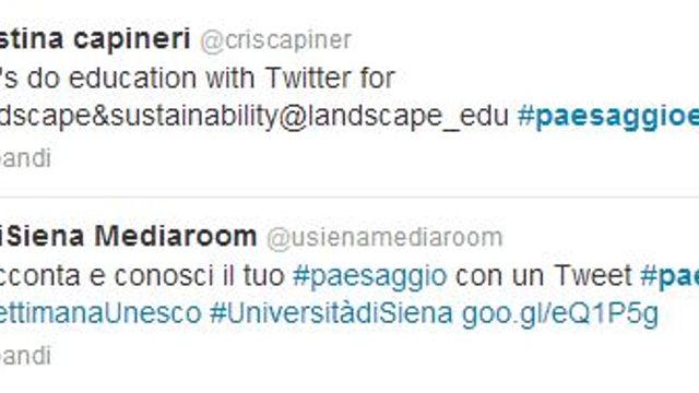 I due migliori tweet saranno premiati come "Miglior amico del @Paesaggio 2013". Singoli cittadini, scuole e studenti sono invitati a partecipare twittando interpretazioni, citazioni, opinioni personali, suggerimenti, link, foto, letture e altro ancora in tema di paesaggio. L'iniziativa #paesaggioedu, che ha il patrocinio dell'Unesco, è promossa in collaborazione con il Museo del paesaggio di Castelnuovo Berardenga e della Società di studi geografici di Firenze.