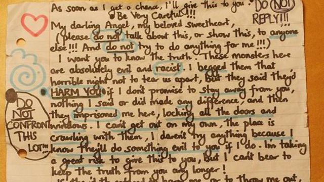 La giovane, che possiede solo un certificato di nascita, era innamorata del vicino e gli ha scritto 500 lettere d'amore e di richiesta d'aiuto che l'uomo - pensando che fosse oggetto della morbosità di qualche persona con disagio mentale - non ha mai portato all'attenzione delle autorità. Il "Sun" e altri giornali hanno pubblicato alcune di queste missive, che l'autrice firmava "Rosie" e in un paio di casi avevano allegate due foto della ragazza (che il tabloid ha pubblicato col volto oscurato". La giovane 'schiava' metteva regolarmente le lettere nella casella postale di Feneck, che ha una compagna e tre figli. Nei testi, frasi d'amore (lo chiamava mio ''amato angelo''), ma soprattutto chiare descrizioni delle condizioni di vita disperate della ragazza dettate da aguzzini ''mostri, pazzi, malvagi e razzisti''. Tutte le porte, si legge, rimanevano chiuse a chiave e "Rosie" si diceva "terrorizzata solo al pensiero di fare qualcosa: perché loro potrebbero farti qualcosa di veramente terribile". E ancora: "osano farsi chiamare la mia famiglia, io li odio. Vivo momenti indicibili di tormento e ogni cosa che faccio è fatta per mantenerti al sicuro".