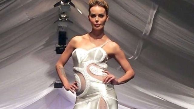 Ci si mette anche il lavoro a rendere difficile la vita di Nina Moric. La sua storia con Massimiliano Dossi procede tra alti e bassi e lei deve sfilare in bianco. Nemmeno un sorriso accennato per la sensuale Nina che sale in passerella vestita da principessa: abito che fascia e trasparenze ad hoc. Sarà anche una sposa triste ma di sicuro non le manca il sex appeal.
