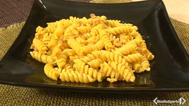 Rosolate la pancetta in un poco di evo, poi aggiungete la panna e lo zafferano (sciolto precedentemente dentro l’acqua della pasta. Dopodicè, a fuoco basso, fate ritirare il composto per qualche minuto, fino a quando non si addensa, poi spegnete il fuoco e lascatelo riposare.
