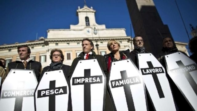 Imprenditori, commercianti e artigiani sono scesi in piazza a Roma per l'"Ultimatum day", la giornata di mobilitazione delle piccole imprese per protestare contro il prelievo fiscale "arrivato al 65,7%". A Montecitorio, quelli che si definiscono "sopravvissuti alla strage di Stato, vittime delle tasse e di Equitalia", hanno riempito la piazza di bare. "Oggi è la giornata per dire basta", ha spiegato Giuseppe Graziani, presidente di Cobas Imprese.