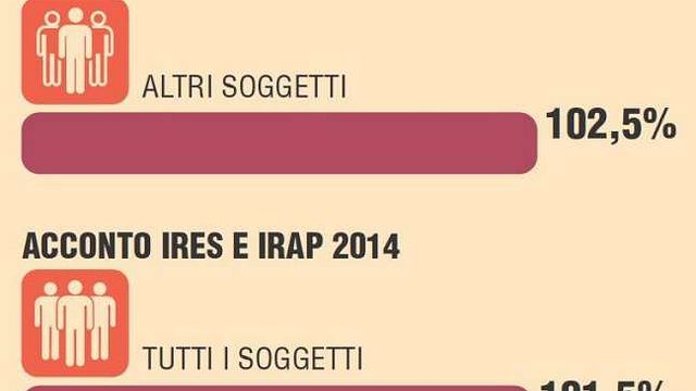 Quindi, oltre agli aumenti degli acconti già previsti dal decreto Imu2 scatta la clausola di Imu1: +1,5 punti percentuali per Ires-Irap (per tutti sale al 102,5, e al 130% per banche e assicurazioni) e l'aumento, ma solo dal 2015, delle accise su gas, energia elettrica e bevande alcoliche (non benzina).
