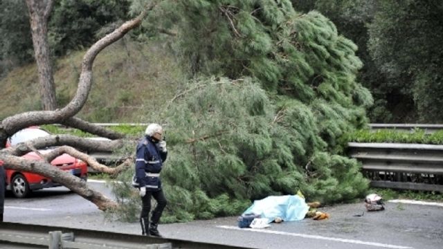 Il maltempo ha provocato un morto a Roma, dove un pino ad alto fusto è caduto addosso a un motociclista, uccidendolo. L'incidente è avvenuto al chilometro 17,800 della via Cristoforo Colombo, che collega Roma con il suo litorale, in prossimità di Malafede. I vigili del fuoco sono subito intervenuti per rimuovere l'albero che aveva schiacciato il centauro, ma per lui ormai non c'era più niente da fare.