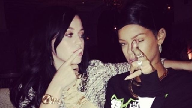 Rihanna, che ha da poco inaugurato il suo nuovo look bon-ton con un caschetto in pieno stile Valentina, si lascia coprire gli occhi da una civettuola Katy Perry mentre alza il calice. Nessuna foto ad immortalare il resto della serata ma, conoscendo il loro passato, non è difficile immaginare come sia finita...
