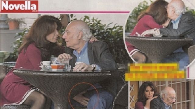 I due hanno regalato ai fotografi un siparietto decisamente hot. Mentre lui tastava il lato B della giovane compagna lei, ben più maliziosa, dava una controllatina sotto il tavolo alle grazie del settantacinquenne. I ventisette anni di differenza non sembrano intaccare la loro passione: baci, risate, abbracci, con un'intesa che ricorda quella di due ragazzini.