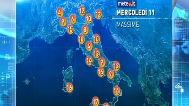 FREDDO UMIDO NELLE AREE NEBBIOSE Temperature massime stabili o in leggero calo; farà freddo anche nel pomeriggio solo nelle aree con nebbie più persistenti: previsti al pomeriggio 6°C a Milano, Novara Brescia e Bologna. 14°C a Genova, Roma, e Catanzaro. 16°C a Napoli, Palermo e Cagliari.