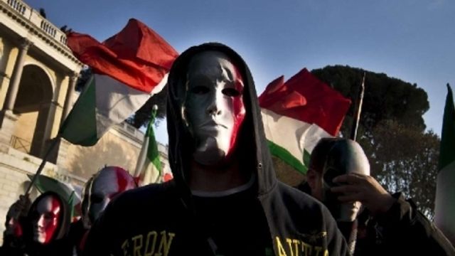 Il corteo dei militanti di Casapound, che è confluito nel sit-in dei forconi in Piazza del Popolo a Roma, è stato accolto con qualche applauso. Tra gli slogan, "Tutti a casa" e cori inneggianti alla nazione e al Tricolore. Durante il sit-in sono stati accesi fumogeni verdi bianchi e rossi ed è stato srotolato uno striscione con la scritta: "Studenti, braccianti, operai... il sole non sorge a Bruxelles".