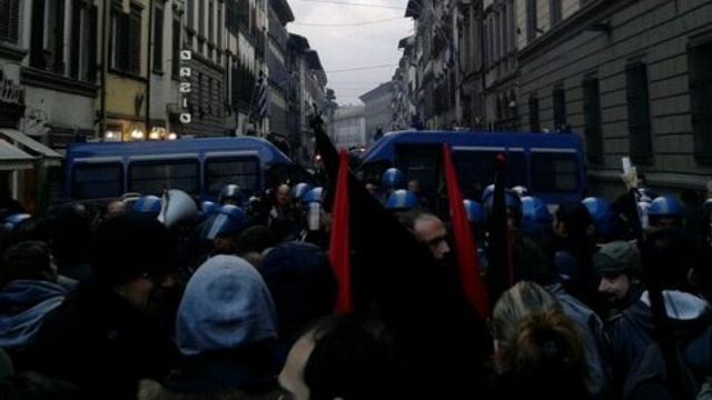 Scontri a Firenze tra un gruppo di antagonisti, che si è radunato per una manifestazione in centro, e le forze dell'ordine. Cinque agenti sono rimasti feriti. Le autorità avevano autorizzato un presidio, ma non il corteo. Gli antagonisti però hanno insistito per fare il corteo, nonostante il divieto. C'è stato un tafferuglio, con lancio di fumogeni e oggetti da parte dei manifestanti e la reazione della forze dell'ordine.