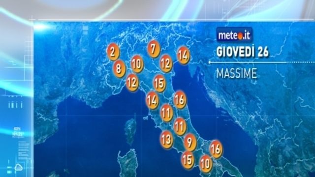 LA TENDENZA PER IL WEEKEND - Sabato una nuova perturbazione entrerà in azione soprattutto nella seconda parte della giornata, con piogge al Nordovest in estensione tra sera e notte al Nordest e all'alta Toscana. Sono previste nuove nevicate sulle Alpi tra 700-1000 metri. Temperature massime in calo al Nord, soprattutto al Nordovest, in leggero aumento al Centrosud.