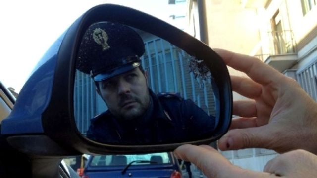 © ansa|Napoli, un agente mostra lo specchietto retrovisore dell'auto della polizia colpita da un proiettile