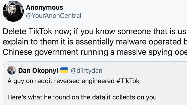 Critiche e polemiche continuano a susseguirsi in merito alla social app cinese TikTok. Dopo essere stata bannata dal governo indiano, insieme ad altre 58 app perché ritenute armi nelle mani del governo cinese, questa volta è Anonymous, l'organizzazione segreta di hacker ad averla accusata su Twitter.