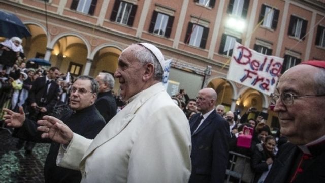 Papa Francesco è arrivato alla parrocchia romana del Sacro Cuore di Gesù a bordo della Ford Focus che usa abitualmente per spostarsi nell'area di Roma. Migliaia i fedeli che, nonostante la pioggia, lo hanno accolto davanti alla chiesa retta dai Salesiani: faceva bella mostra di sé anche uno striscione con una scritta in tipico gergo romano, "Bella Frà". Il Papa si è intrattenuto a lungo a salutare la folla, prima di entrare nell'edificio parrocchiale.