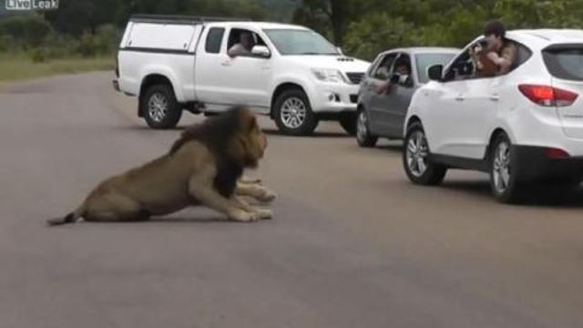 Mandereste i vostri figli letteralmente "nella fossa del leone"? I genitori di questo video lo hanno fatto. I loro due pargoli si sporgono dal finestrino dell'auto durante un safari al Kruger National Park, in Sud Africa. I bambini scattano delle foto al re della foresta a distanza ravvicinata. Per fortuna il felino si è lasciato immortalare di buon grado.