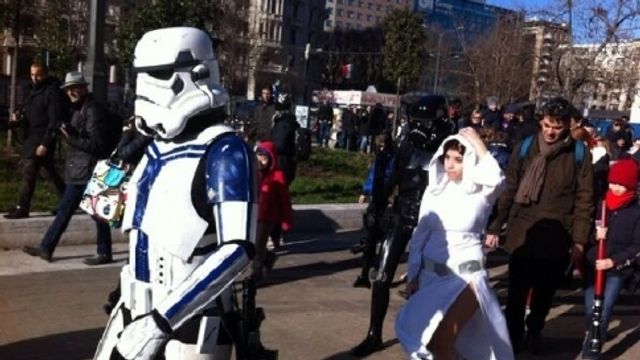 Gli eroi di Star Wars in corteo per le strade di Milano. Guardie imperiali, piloti ribelli, stormtroupers e cavalieri Jedi hanno sfilato dalla Stazione Centrale fino al Museo Fermo Immagine, dove è allestita una mostra sul mito di Guerre stellari. Sotto le maschere c'erano i componenti della 501st Legion e della Rebel Legion, gli unici due gruppi di costuming autorizzati da Lucasfilm.