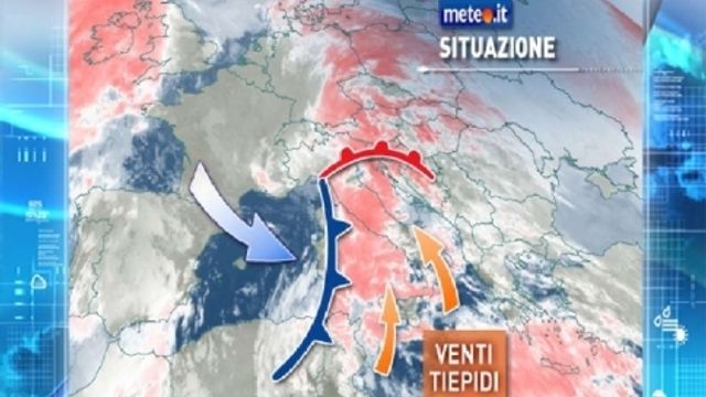 Sabato giornata di maltempo con piogge più intense al Nordest e neve sulle Alpi sopra i 1000-1400 metri. Le piogge in giornata raggiungeranno anche la Lombardia. Al Centro tempo instabile con nubi e fenomeni più intermittenti. Rovesci con locali temporali al Sud, con accumuli particolarmente rilevanti sulle zone ioniche, soprattutto in Calabria. Temperature massime in lieve calo al Sud, senza grandi variazioni altrove. Forti venti di Scirocco su Ionio e Adriatico.