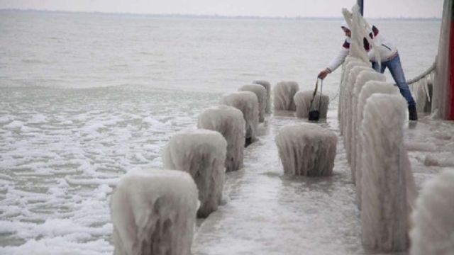Lampioni, marciapiedi e cartelli: tutto sulle rive del lago Balaton, a 200 chilometri da Budapest, in Ungheria, si è ricoperto di ghiaccio. Un vero spettacolo della natura provocato dai forti venti gelidi che soffiano nella zona da alcuni giorni.