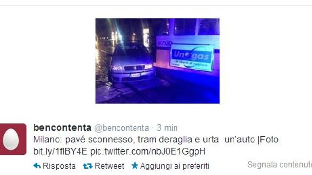 Tre persone sono rimaste ferite durante il deragliamento di un tram, a Milano, uscito dalla sua sede a causa del pavè dissestato. E' accaduto in via Tivoli, dove il mezzo ha urtato una Fiat Panda che proveniva nel senso opposto. Nell'impatto due passeggeri della vettura e il conducente del tram hanno subito lievi contusioni. I primi sono stati accompagnati all'ospedale Fatebenefratelli; l'autista, sotto shock, al Policlinico.