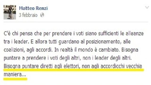 Il segretario del Partito Democratico ha sempre voluto precisare il suo essere estraneo alle logiche di Palazzo e alle vecchie regole della politica. Almeno fino a qualche giorno fa, visto che oggi ha annunciato uno strappo che tanti gli rimproverano proprio perché molto simile alle crisi di governo della prima Repubblica. Nella gallery abbiamo raccolto gli ultimi tweet e gli ultimi post Facebook nei quali Matteo Renzi prometteva strategie nuove.