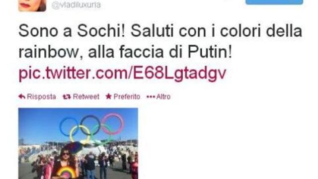 Vladimir Luxuria, arrestata a Sochi durante i Giochi invernali, è stata liberata. Lo annuncia Fabrizio Marrazzo, portavoce del Gay Center, che spiega di aver ricevuto un sms dalla stessa Luxuria: "Sono stata liberata e assisterò ai Giochi". Luxuria, quando è stata fermata dalla polizia, aveva una bandiera "E' ok essere gay".
