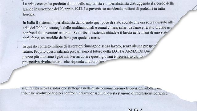 Aperto fascicolo per minacce - Il documento, tre pagine recapitate in una busta bianca affrancata e con timbro postale apparentemente di Torino, viene considerato dagli inquirenti con la massima attenzione. La sigla "Noa" è già nota agli investigatori. La Procura di Torino ha aperto un fascicolo di indagine sulla lettera. Il reato ipotizzato è "minacce".