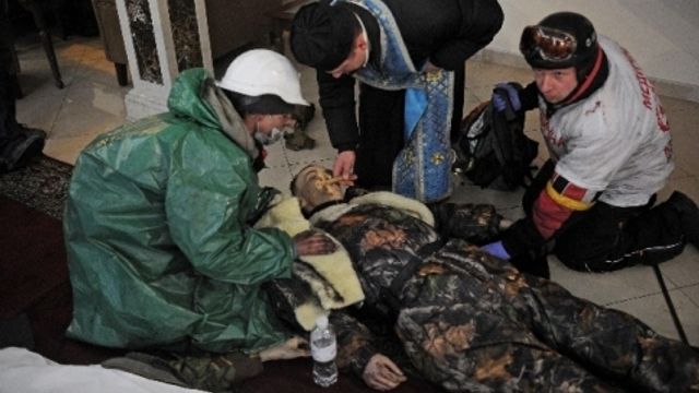 La tensione è salita alle stelle a Kiev. Ormai piazza Maidan sembra un campo di guerra e i tristi bilanci dei morti e dei feriti aumentano di ora in ora. Ecco le prime cruenti immagini dei manifestanti colpiti durante gli scontri con la polizia e del loro soccorso.