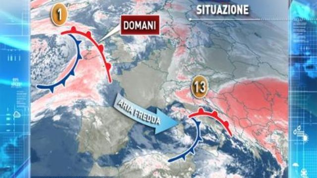 Martedì maltempo soprattutto su Lombardia, al Nordest, regioni tirreniche ed Isole, andrà meglio soltanto all'estremo Nordovest, su Puglia e alto Ionio. Neve sui rilievi del Nord oltre 600-900 metri, su quelli del Centrosud tra 800 e 1000 metri. Su regioni tirreniche e Isole rischio anche di rovesci o temporali. Venti molto intensi al Sud e nelle Isole. Temperature in calo. Nel resto della settimana condizioni di instabilità potranno insistere ancora sul medio Adriatico e al Sud per l'effetto del vortice di bassa pressione che si formerà con l'arrivo di questa nuova perturbazione. Situazione in miglioramento invece al Nord, sull'alto Tirreno e in Sardegna grazie alla rimonta dell'alta pressione.