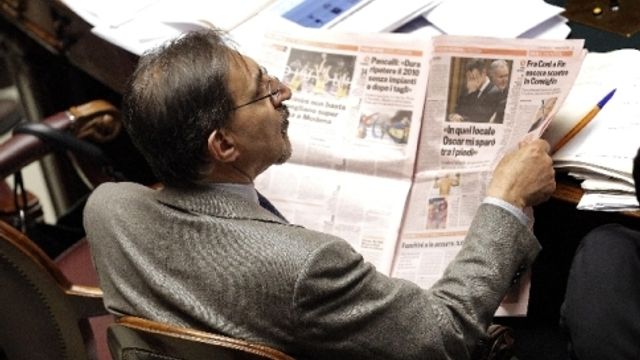 Pausa con cioccolatini tra i banchi del Pd alla Camera durante l'esame sulle nuove "Disposizioni relative alla Legge Elettorale". L'onorevole Ignazio La Russa, invece, si concede una lettura della "Gazzetta dello Sport".